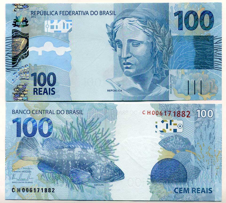 Бразилия 100 реалов 2010 голова Республики, групер Pick 257 b бумага UNC (пресс) 451-279-2