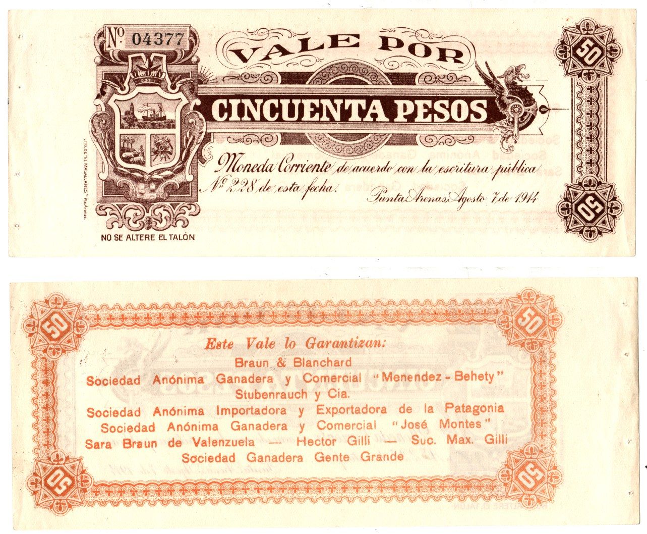 Чили, Пунта-Аренасе 50 песо 1914 ваучер бумага 451-1261-2