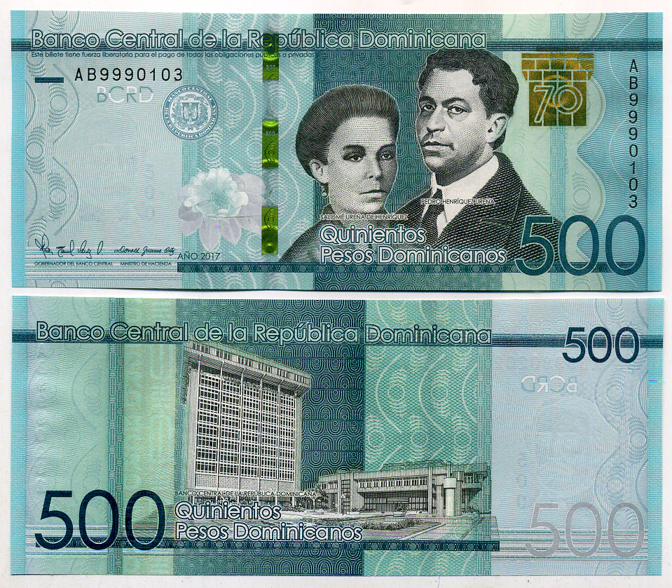 -Доминиканская Республика 500 песо 2017 70 лет центральному банку, Педро Энрикес Уренья, Саломе Уренья де Энрикес Pick 195 бумага UNC (пресс) 00-00АргентинаСШАКолумбияКоста-РикаКубаМексикаНидерландские АнтилыНикарагуаПарагвайПеруСуринамКанадаТринидад и ТобагоУругвайЧилиЭквадорЯмайкаВосточно-Карибские штатыГренландияКаймановы островаБермудские острова (Бермуды)Багамские островаБарбадосБелизБоливияБразилияВенесуэлаГаитиГайанаГватемалаГондурасДругие страны