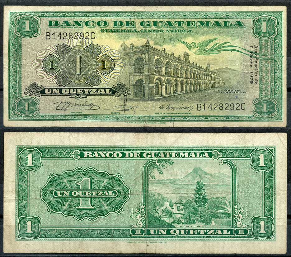 Гватемала 1 кетсаль 1970 Наследие Серро-дель-Кармен, Озеро Атитлан Pick 52 g (1) бумага 7217-62-1-2