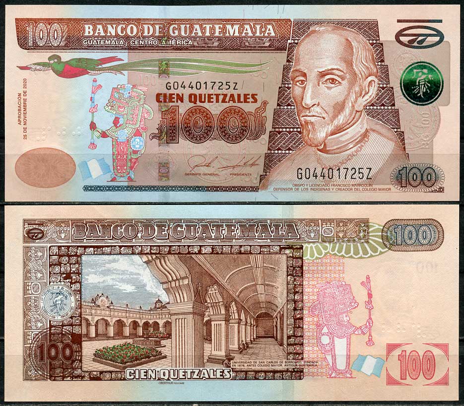 -Гватемала 100 кетсалей 2020 25 ноября 2020, Франциско Маррокин, университет Сан-Карлос-де-Борромео Pick 126 бумага UNC (пресс) 451-657-2АргентинаСШАКолумбияКоста-РикаКубаМексикаНидерландские АнтилыНикарагуаПарагвайПеруСуринамКанадаТринидад и ТобагоУругвайЧилиЭквадорЯмайкаВосточно-Карибские штатыГренландияКаймановы островаБермудские острова (Бермуды)Багамские островаДоминиканская РеспубликаБарбадосБелизБоливияБразилияВенесуэлаГаитиГайанаГондурасДругие страны
