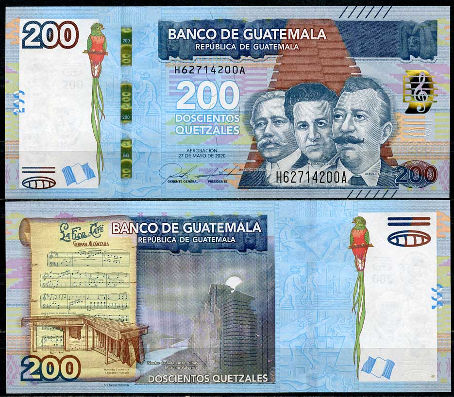Гватемала 200 кетсалей 2020 Герман Алькантара, Мариано Вальверде, Себастьян Уртадо Pick 127 бумага UNC (пресс) 451-657-3