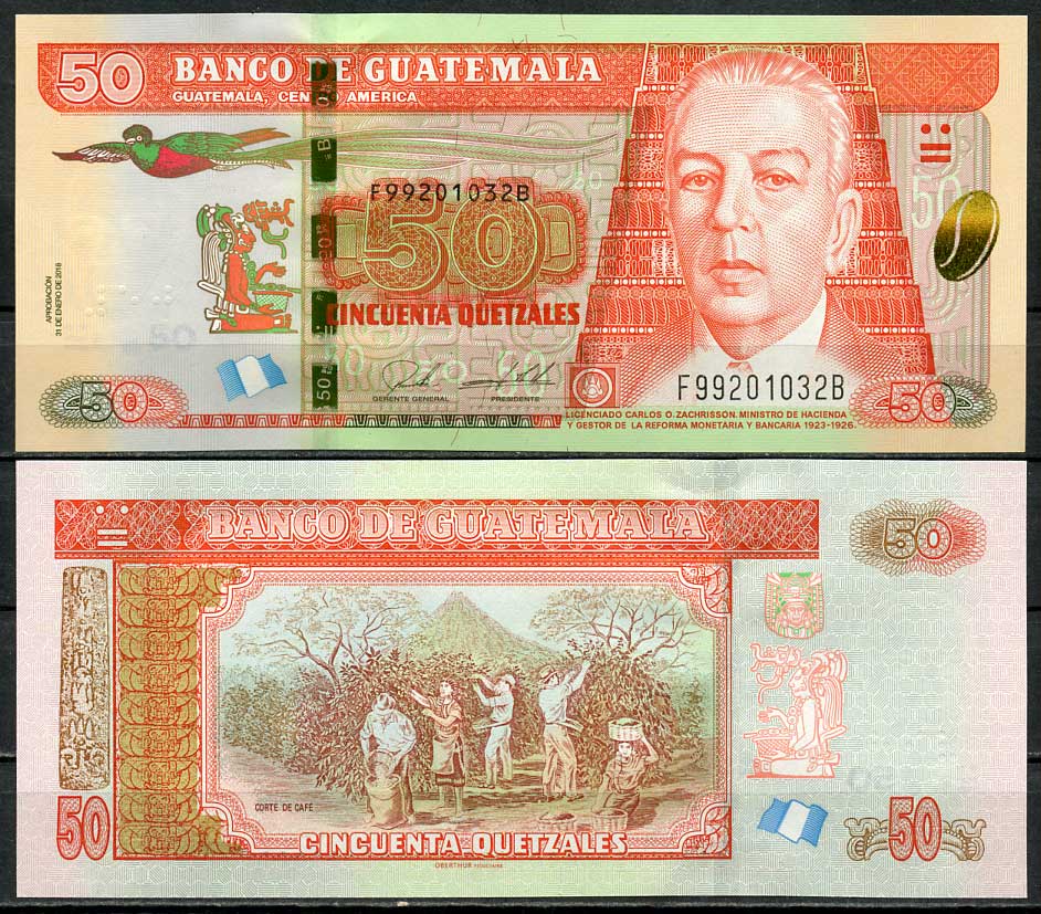 -Гватемала 50 кетсалей 2018 31 января 2018, Карлос О. Закриссон, урожай кофе Pick 125 c бумага UNC (пресс) 447-6-2АргентинаСШАКолумбияКоста-РикаКубаМексикаНидерландские АнтилыНикарагуаПарагвайПеруСуринамКанадаТринидад и ТобагоУругвайЧилиЭквадорЯмайкаВосточно-Карибские штатыГренландияКаймановы островаБермудские острова (Бермуды)Багамские островаДоминиканская РеспубликаБарбадосБелизБоливияБразилияВенесуэлаГаитиГайанаГондурасДругие страны