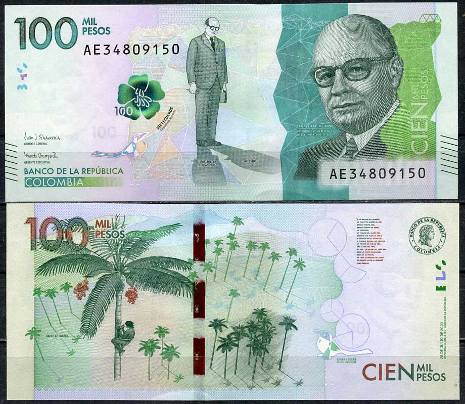 Колумбия 100000 песо 2020 Карлос Льерас Рестрепо, восковые пальмы в долине Кокора Pick 463 бумага UNC (пресс) 451-672-3
