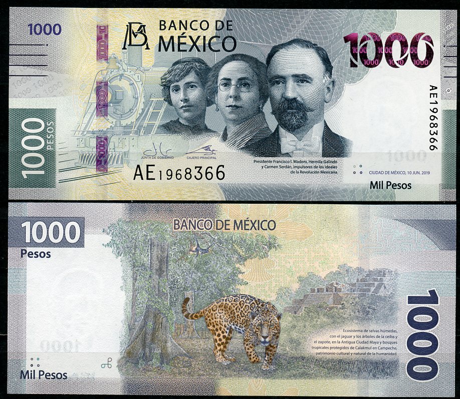 -Мексика 1000 песо 2019 Гермила Галиндо, Кармен Сердан, Франсиско Игнасио Мадеро, паровоз № 279, ягуар Pick 137 (2019-1) бумага UNC (пресс) 451-573-3АргентинаСШАКолумбияКоста-РикаКубаНидерландские АнтилыНикарагуаПарагвайПеруСуринамКанадаТринидад и ТобагоУругвайЧилиЭквадорЯмайкаВосточно-Карибские штатыГренландияКаймановы островаБермудские острова (Бермуды)Багамские островаДоминиканская РеспубликаБарбадосБелизБоливияБразилияВенесуэлаГаитиГайанаГватемалаГондурасДругие страны