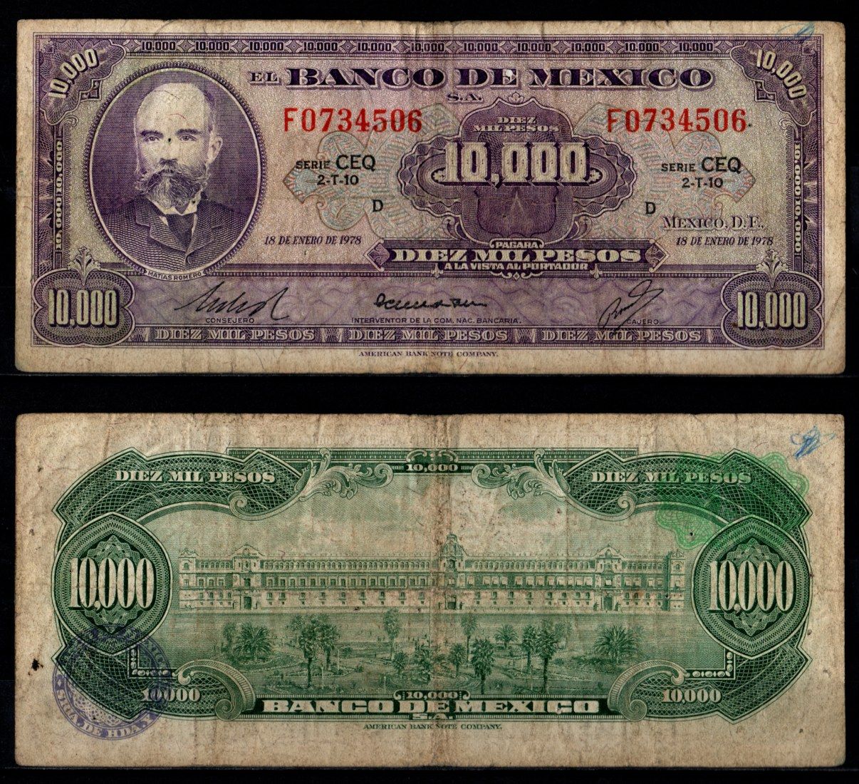 Мексика 10000 песо 1978 Матиас Ромеро. Национальный дворец Pick 72 бумага 451-1281-1