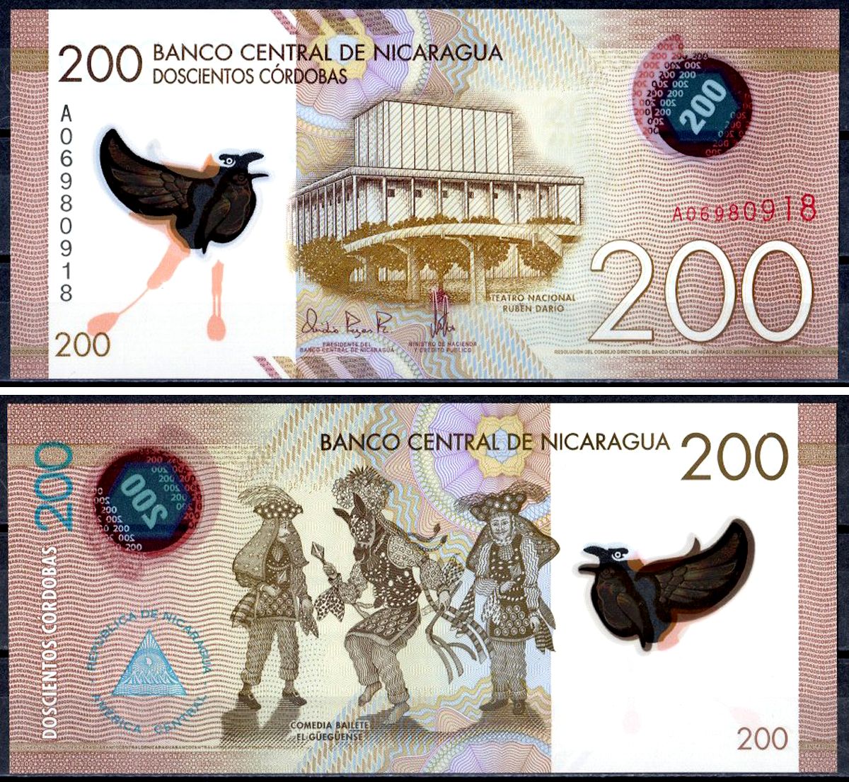 Никарагуа 200 кордоба 2014 национальный театр Рубена Дарио, Манагуа, комедийный балет Гуэгуэнсе Pick 213 a пластик UNC (пресс) 7548-60-2-2