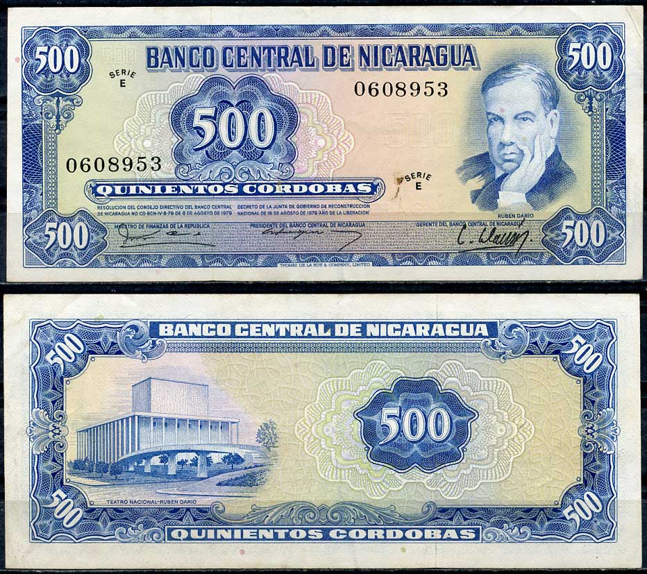 Никарагуа 500 кордоба 1979 Рубен Дарио, Национальный театр, Манагуа Pick 133 бумага 7217-68-3-1
