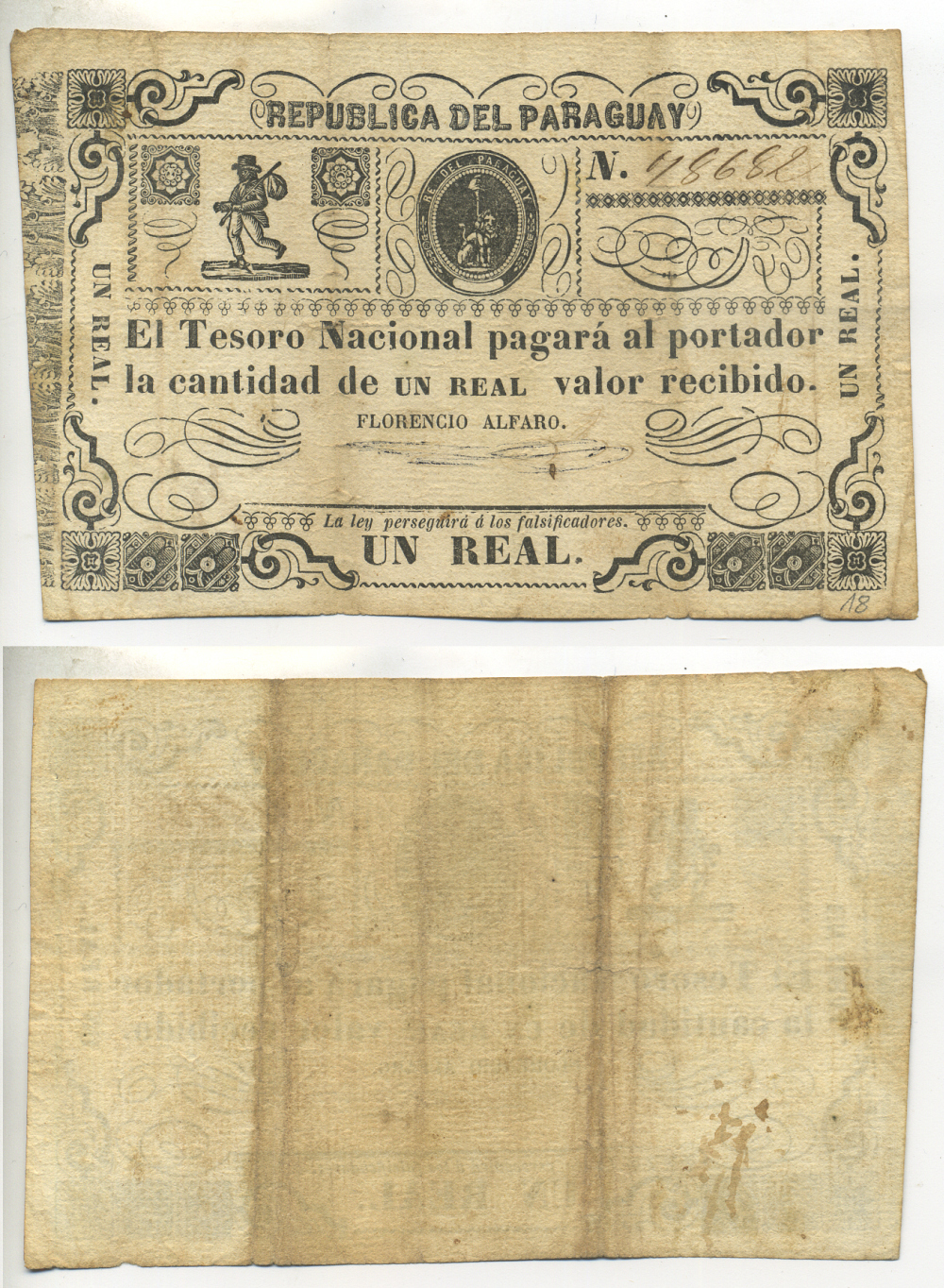 Парагвай 1 реал 1865 Pick 18 бумага 451-235-1