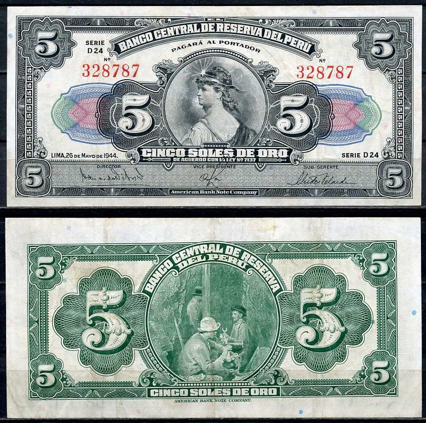 Перу 5 солей 1944 свобода, нефтяная промышленность Pick 66A a бумага 451-591-1