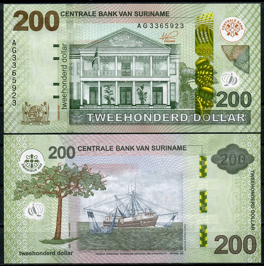 -Суринам 200 долларов 2024 здание Центрального банка, дерево-песочница, рыболовецкий траулер Pick 166A бумага UNC (пресс) 451-760-2АргентинаСШАКолумбияКоста-РикаКубаМексикаНидерландские АнтилыНикарагуаПарагвайПеруКанадаТринидад и ТобагоУругвайЧилиЭквадорЯмайкаВосточно-Карибские штатыГренландияКаймановы островаБермудские острова (Бермуды)Багамские островаДоминиканская РеспубликаБарбадосБелизБоливияБразилияВенесуэлаГаитиГайанаГватемалаГондурасДругие страны