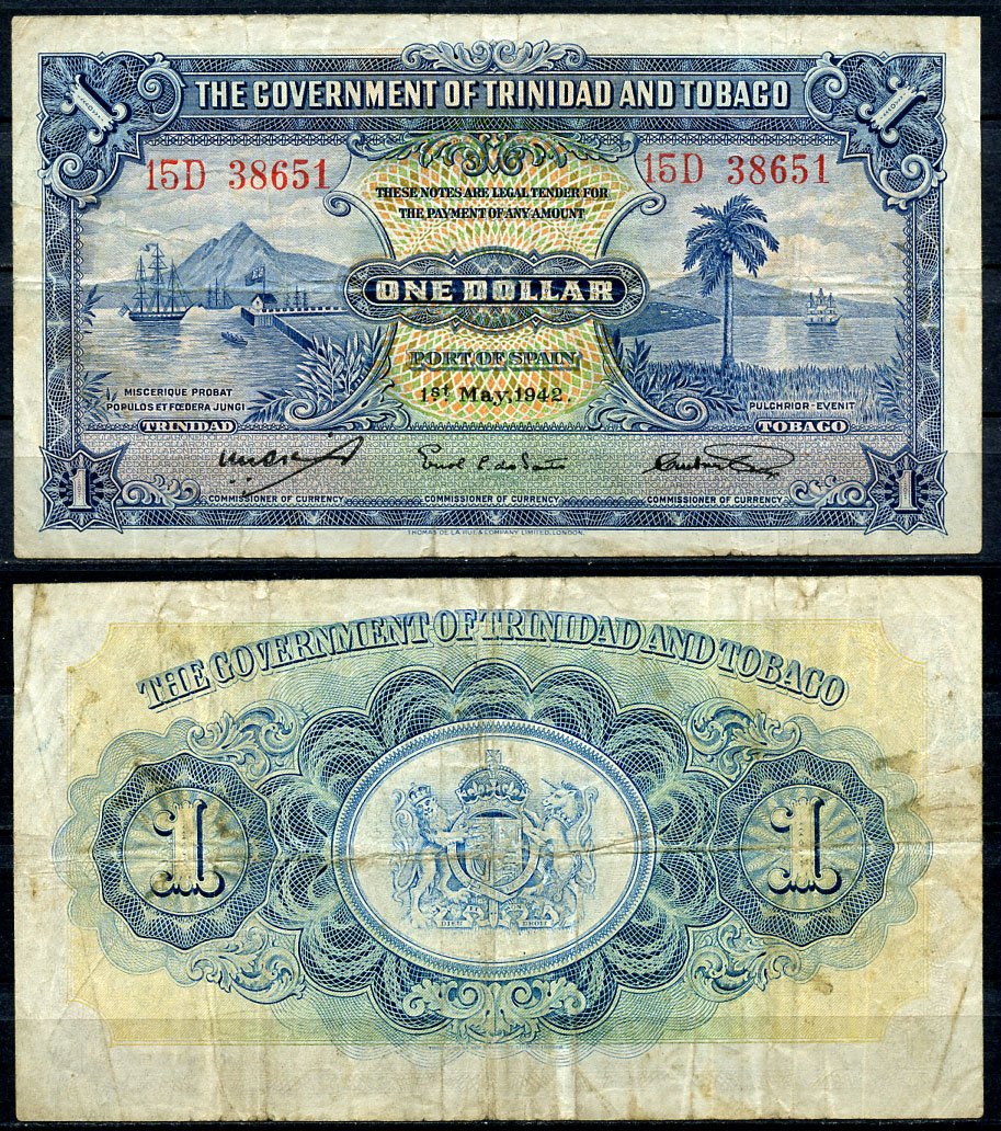 -Тринидад и Тобаго 1 доллар 1942 1 мая 1942 Pick 5 c бумага 000-00-00АргентинаСШАКолумбияКоста-РикаКубаМексикаНидерландские АнтилыНикарагуаПарагвайПеруСуринамКанадаУругвайЧилиЭквадорЯмайкаВосточно-Карибские штатыГренландияКаймановы островаБермудские острова (Бермуды)Багамские островаДоминиканская РеспубликаБарбадосБелизБоливияБразилияВенесуэлаГаитиГайанаГватемалаГондурасДругие страны