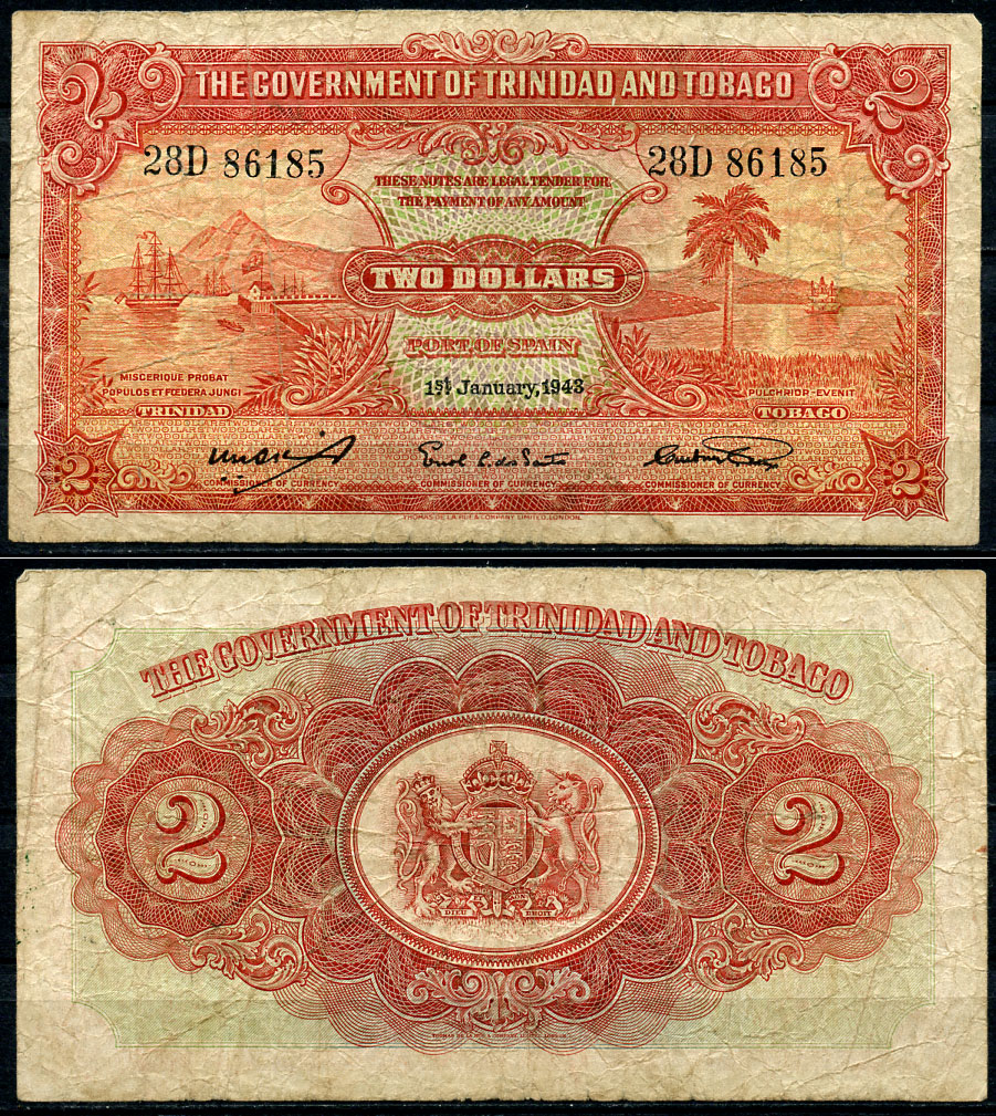 -Тринидад и Тобаго 2 доллара 1943 1 января 1943 Pick 8 бумага 451-43-2АргентинаСШАКолумбияКоста-РикаКубаМексикаНидерландские АнтилыНикарагуаПарагвайПеруСуринамКанадаУругвайЧилиЭквадорЯмайкаВосточно-Карибские штатыГренландияКаймановы островаБермудские острова (Бермуды)Багамские островаДоминиканская РеспубликаБарбадосБелизБоливияБразилияВенесуэлаГаитиГайанаГватемалаГондурасДругие страны