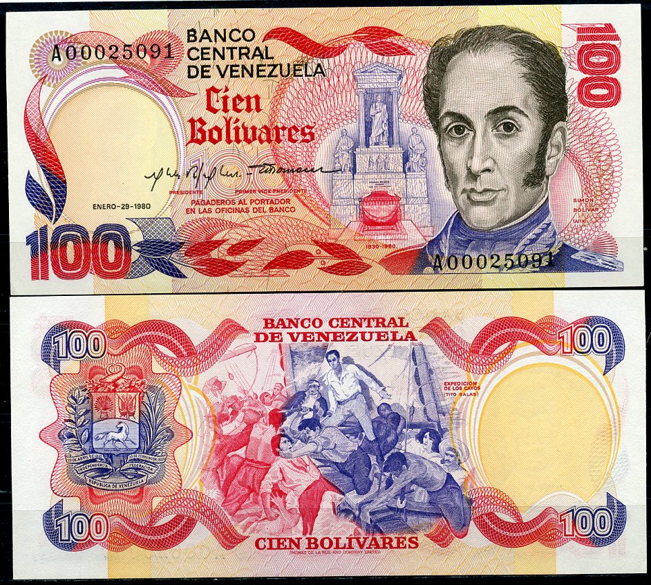 -Венесуэла 100 боливаров 1980 150 лет со дня смерти Симона Боливара Pick 59 a бумага UNC (пресс) 451-810-3АргентинаСШАКолумбияКоста-РикаКубаМексикаНидерландские АнтилыНикарагуаПарагвайПеруСуринамКанадаТринидад и ТобагоУругвайЧилиЭквадорЯмайкаВосточно-Карибские штатыГренландияКаймановы островаБермудские острова (Бермуды)Багамские островаДоминиканская РеспубликаБарбадосБелизБоливияБразилияГаитиГайанаГватемалаГондурасДругие страны