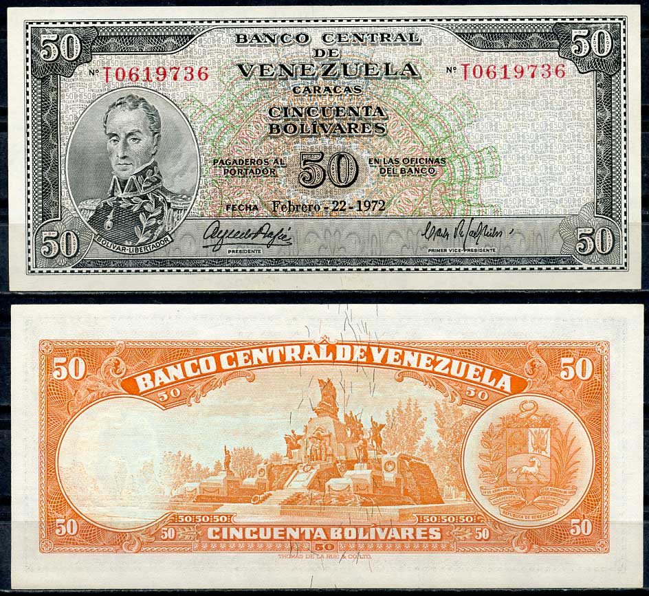 Венесуэла 50 боливаров 1972 Симон Боливар, монумент битве при Карабобо Pick 47 g бумага UNC (пресс) 00-00
