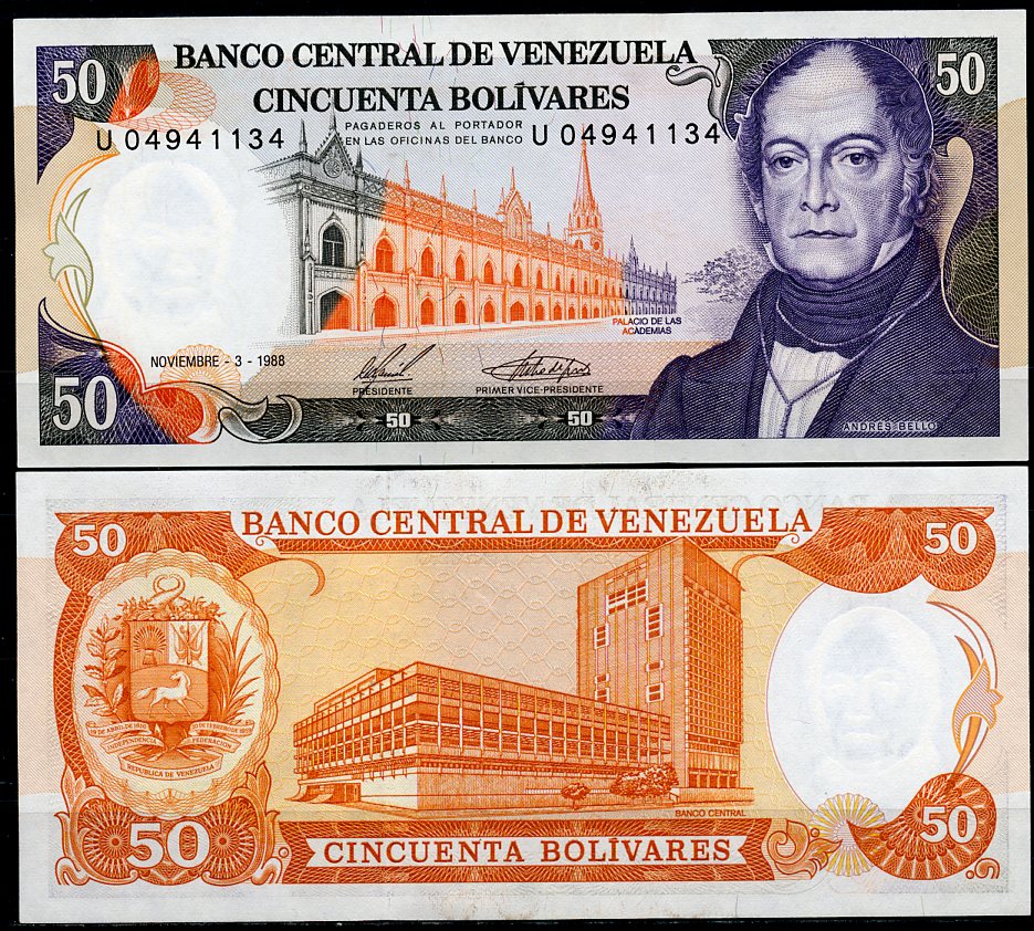 -Венесуэла 50 боливаров 1988 Андрес Белло, здание академии Pick 65 b бумага aUNC 447-45-2АргентинаСШАКолумбияКоста-РикаКубаМексикаНидерландские АнтилыНикарагуаПарагвайПеруСуринамКанадаТринидад и ТобагоУругвайЧилиЭквадорЯмайкаВосточно-Карибские штатыГренландияКаймановы островаБермудские острова (Бермуды)Багамские островаДоминиканская РеспубликаБарбадосБелизБоливияБразилияГаитиГайанаГватемалаГондурасДругие страны