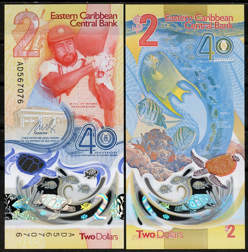 Восточно-Карибские штаты 2 доллара 2023 40 лет Центральному банку Pick 61 пластик UNC (пресс) 449-78-3