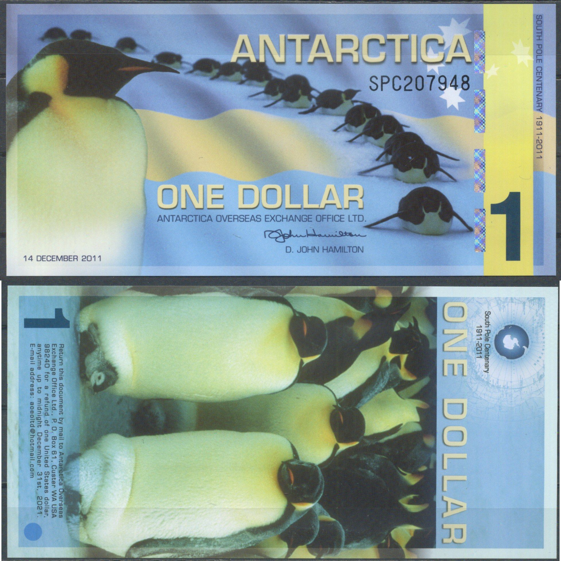 Антарктида 1 доллар 2011 Императорские пингвины полимер UNC (пресс) 7553-7-4-1