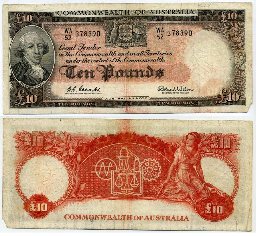 Австралия 10 фунтов ND (1960-1965) Артур Филлип Pick 36 бумага 451-179-1