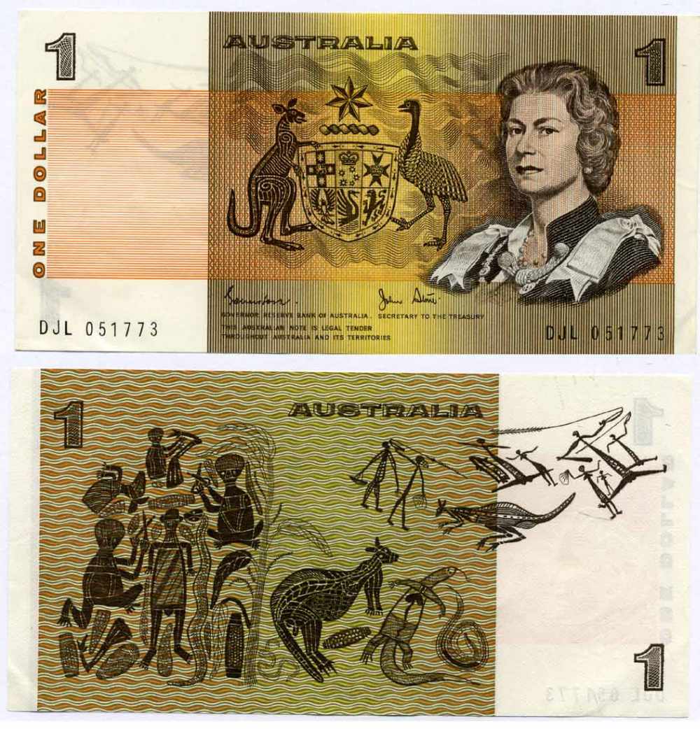 Австралия 1 доллар 1974-1983 signatures: Johnston & Stone Pick 42 d бумага aUNC 449-31-1