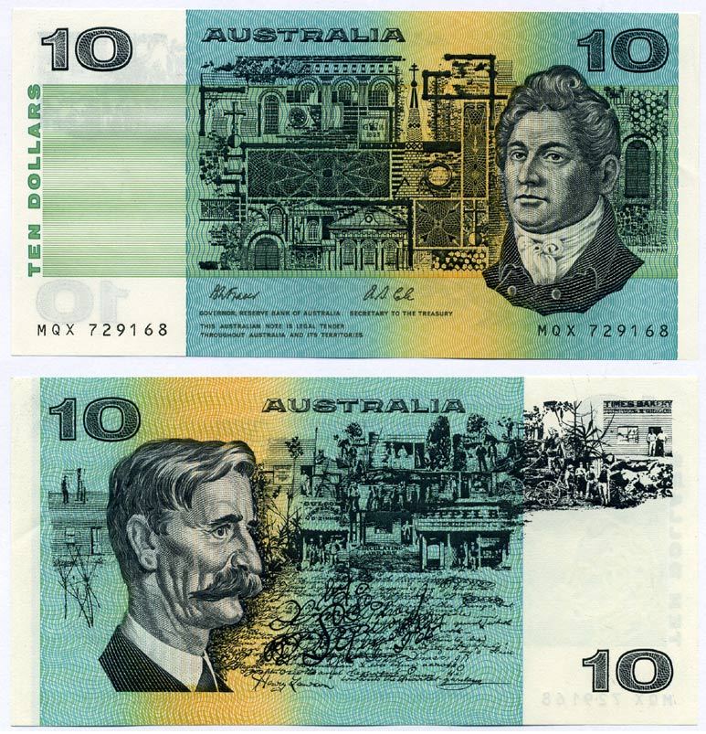 Австралия 10 долларов 1974-1991 Говард Гринуэй, signatures: Fraser & Cole Pick 45 g бумага UNC (пресс) 449-24-3