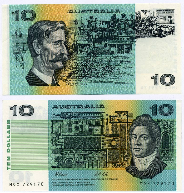Австралия 10 долларов 1991 Говард Гринуэй, signatures: Johnston & Fraser Pick 45 g бумага аUNC 449-32-3