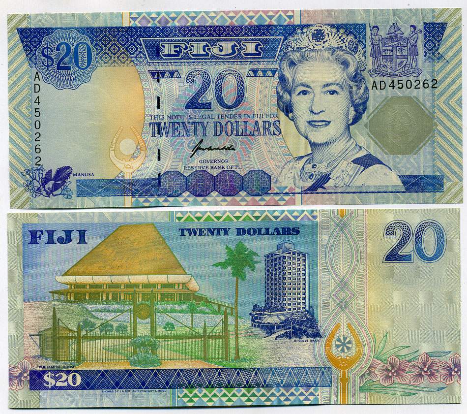 Фиджи 20 долларов ND (1996) Елизавета II (1952-2022), парламент, резервный банк Pick 99 b бумага UNC (пресс) 00-00