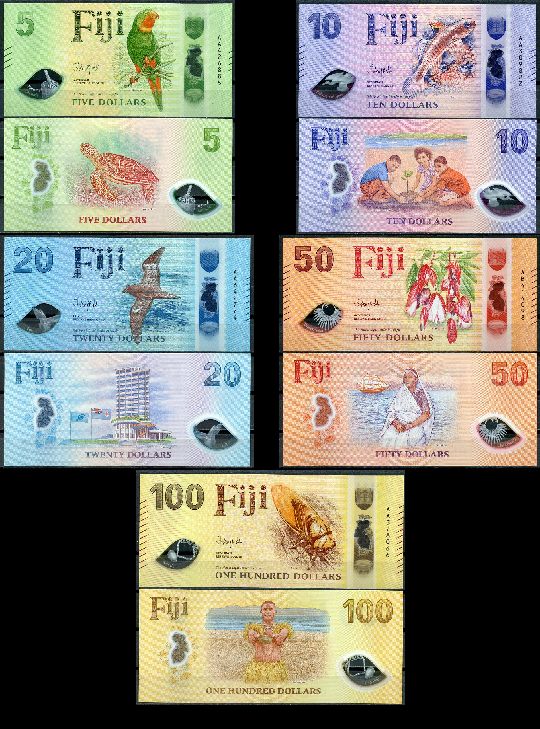 Фиджи лот из 5 банкнот ND (2026) 5, 10, 20, 50 и 100 долларов Pick 125, 126, 127, 128, 129 пластик UNC (пресс) 451-300-2