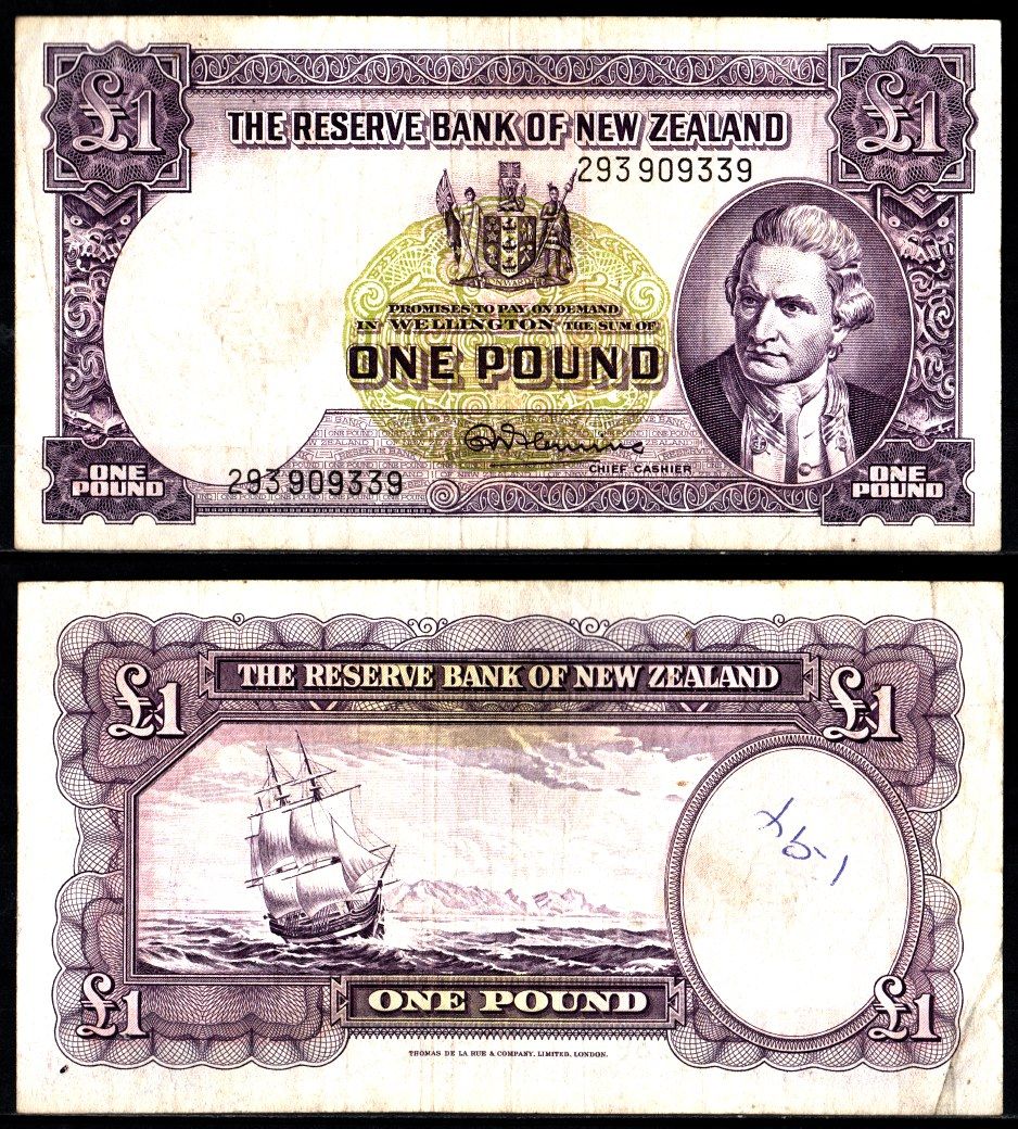 Новая Зеландия 1 фунт 1940-1955 Pick 159 d бумага 2119-40-2-2