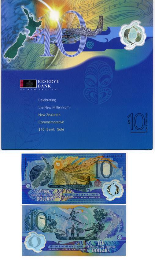 Новая Зеландия 10 долларов 2000 миллениум, оригинальный буклет Pick 190 b пластик UNC (пресс) 505-23-1-2