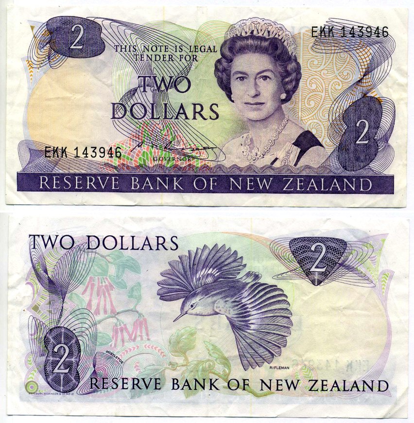 Новая Зеландия 2 доллара 1981-1992 signature: Russell Pick 170b бумага VF 7523-43-4-2