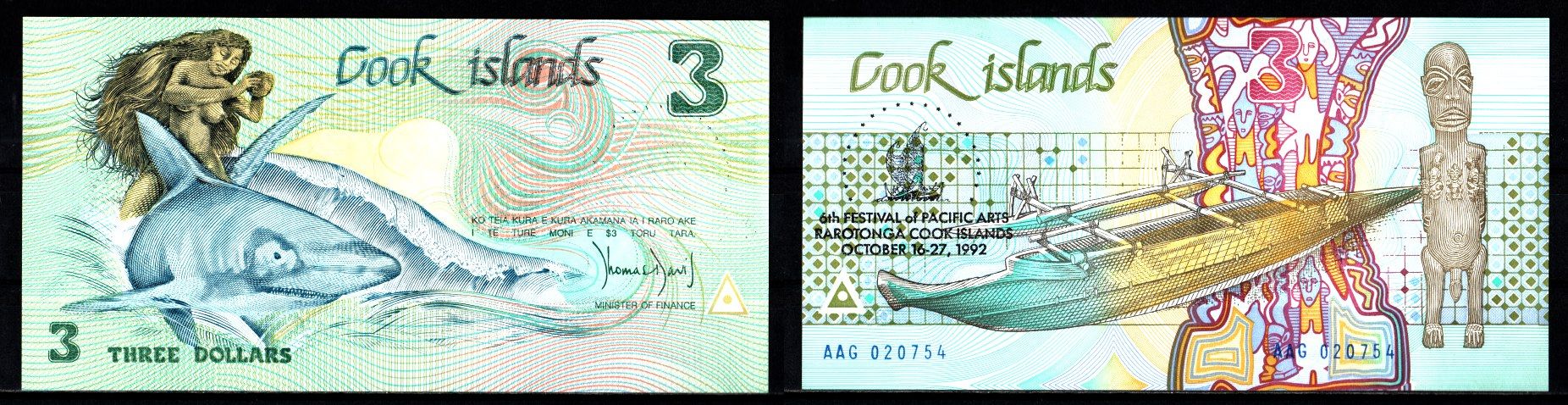 Острова Кука 3 доллара 1992 6-й Фестиваль тихоокеанских искусств на Раротонге Pick 6 бумага UNC (пресс) 8608-29-2-1