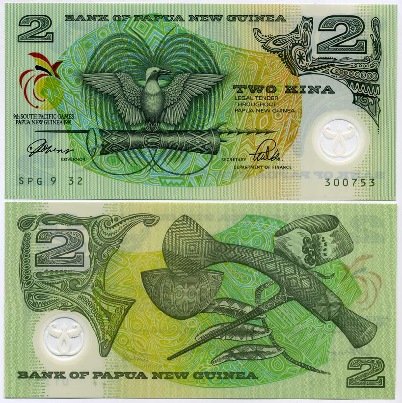 Папуа-Новая Гвинея 2 кина 1991 IX-е Южно-Тихоокеанские игры 1991 года Pick 12 a пластик UNC (пресс) 000-00-00