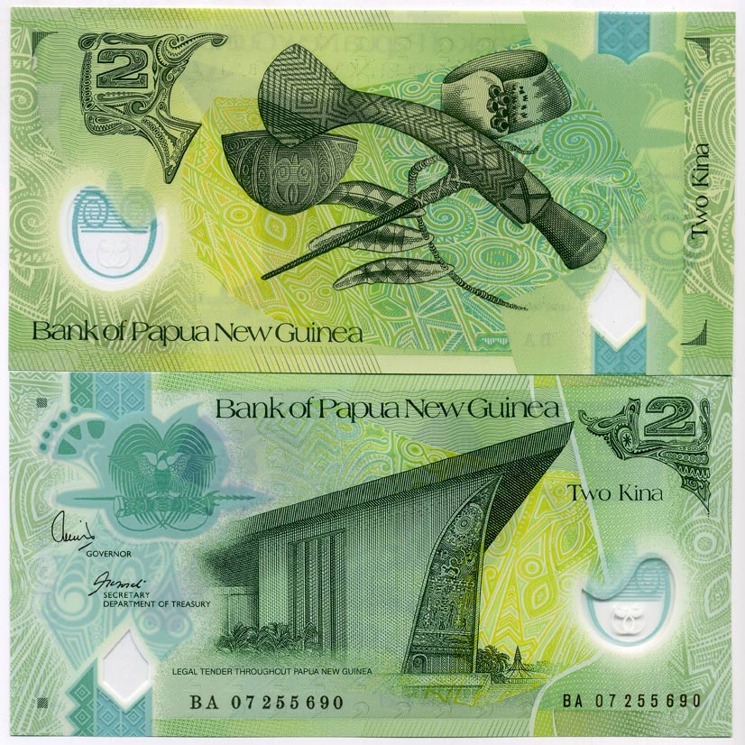 Папуа-Новая Гвинея 2 кина 2007 signatures: Kamit & Tossali Pick 28 а пластик UNC (пресс) 449-20-2