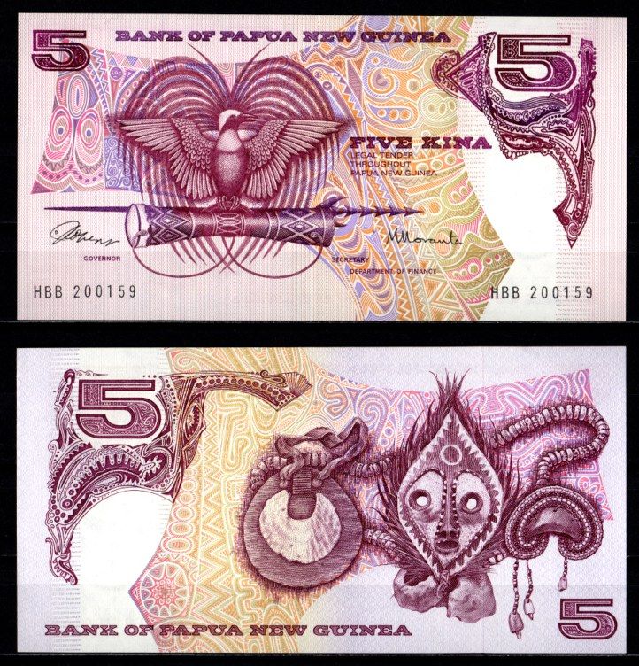 Папуа-Новая Гвинея 5 кина ND (1981-1988) Pick 6 a 7215-56-1-2 бумага UNC (пресс) 451-1120-2