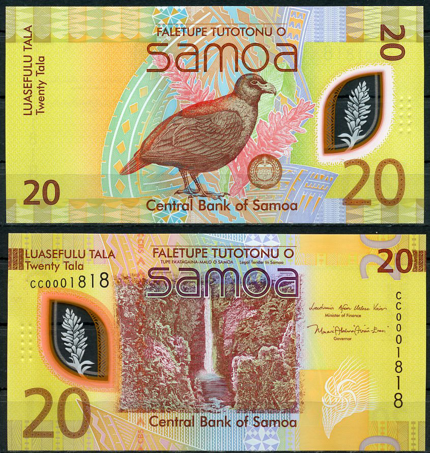 Самоа 20 тала ND (2023) водопад Папапапайтай, птица Манумея Pick 49 a пластик UNC (пресс) 449-8-3