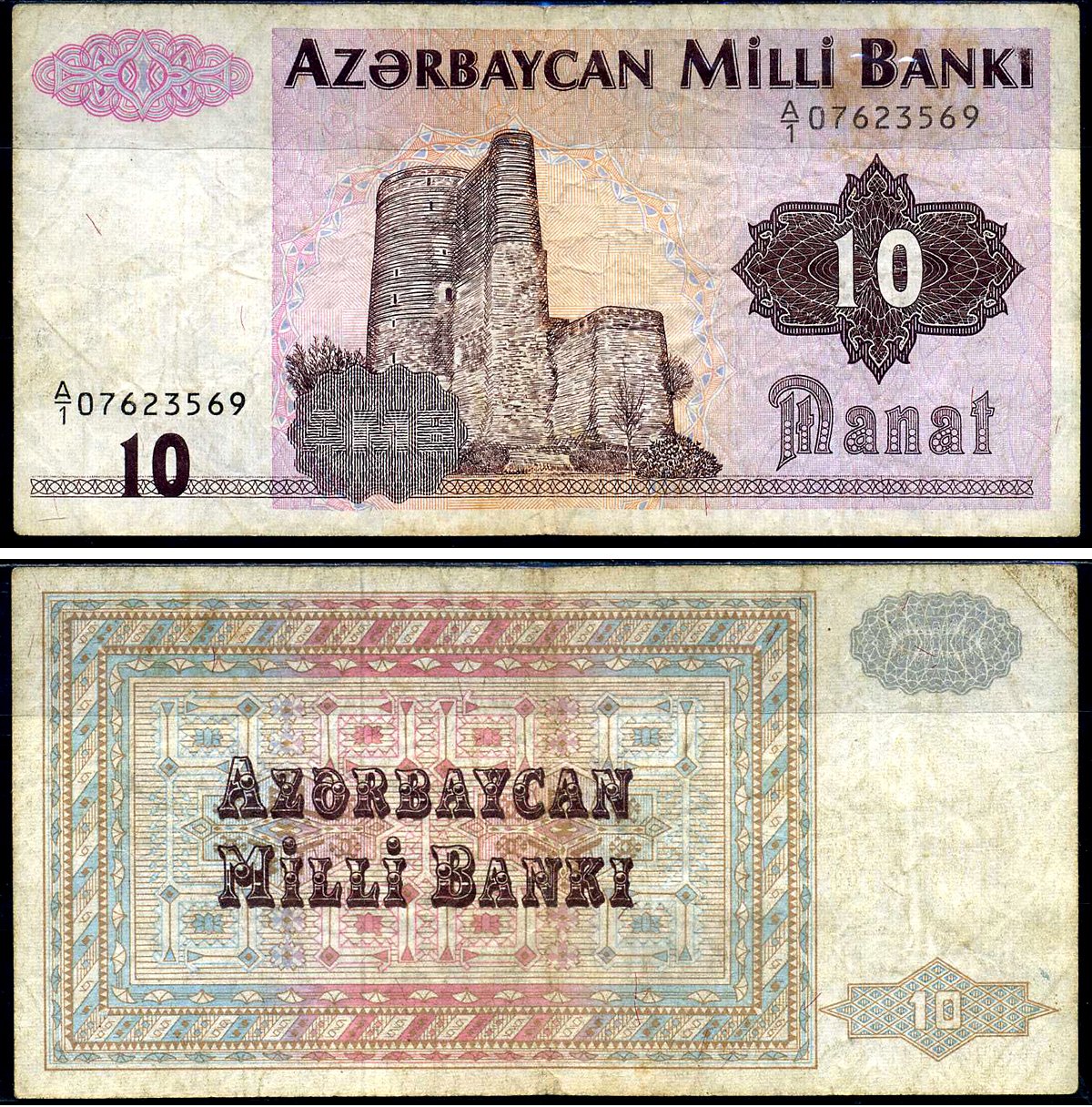 Азербайджан 10 манат 1992 Девичья башня в Баку Pick 12, Сергеев 2 бумага 00-00