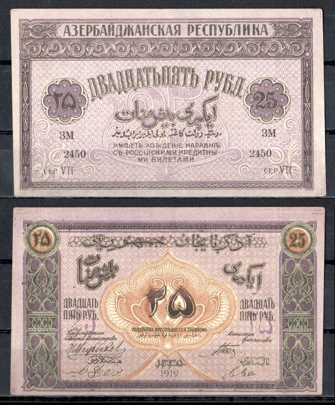 -----Азербайджан 25 рублей 1919 Азербайджанская Демократическая Республика (АДР) Pick 1 бумага 7457-20-1-1