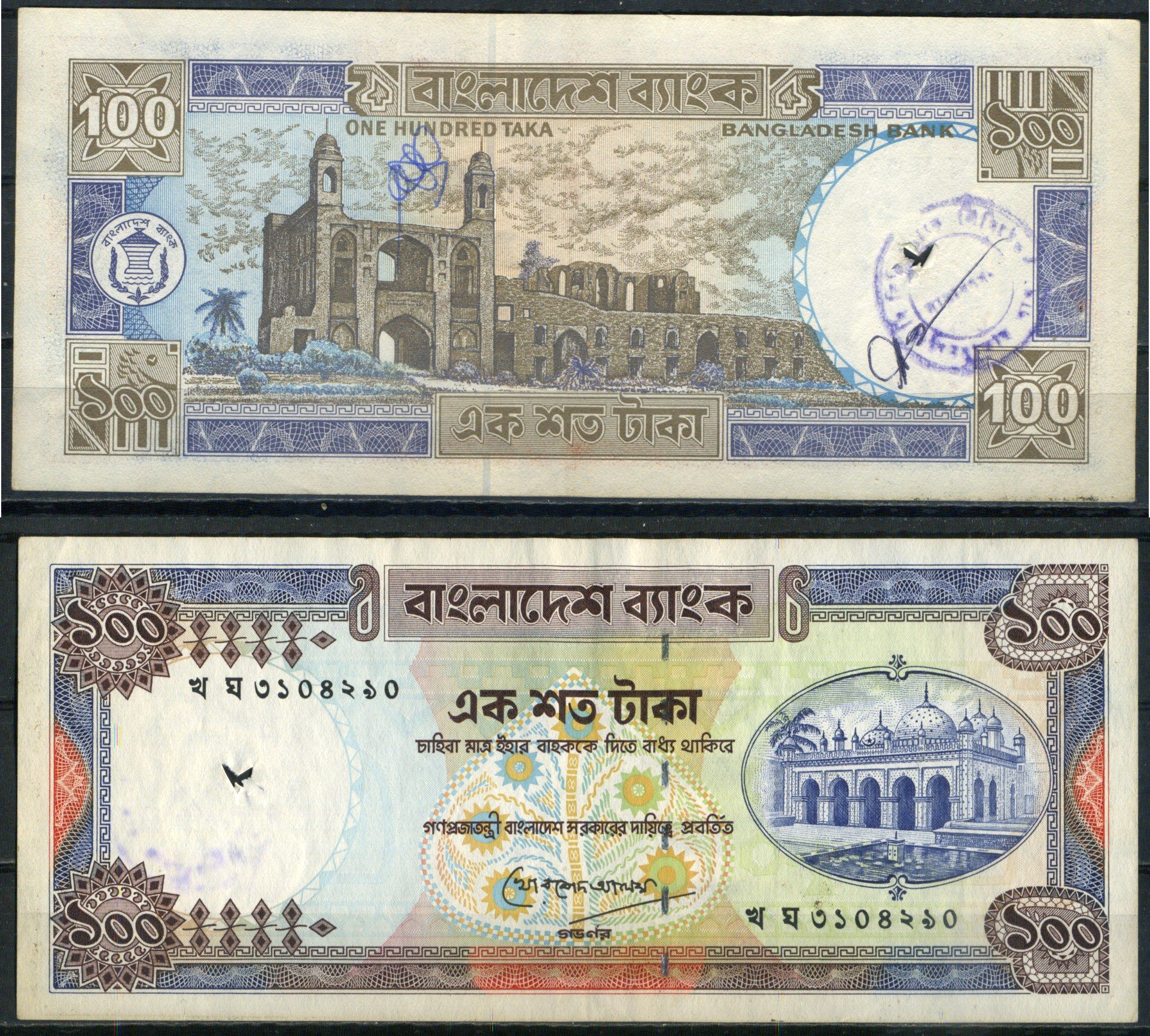 -----Бангладеш 100 така ND (1983-2000) Pick 31 c (1) бумага 8621-1-2-1