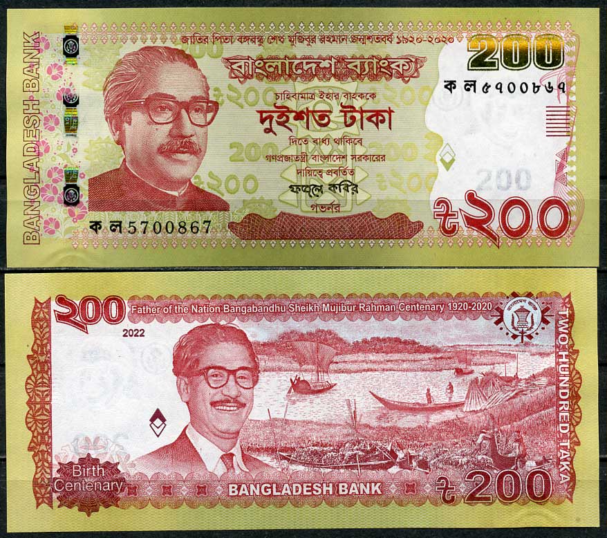 -----Бангладеш 200 така 2022 100 со дня рождения отца нации Муджибура Рахмана (1920-2020) Pick 67 b бумага UNC (пресс) 448-15-1