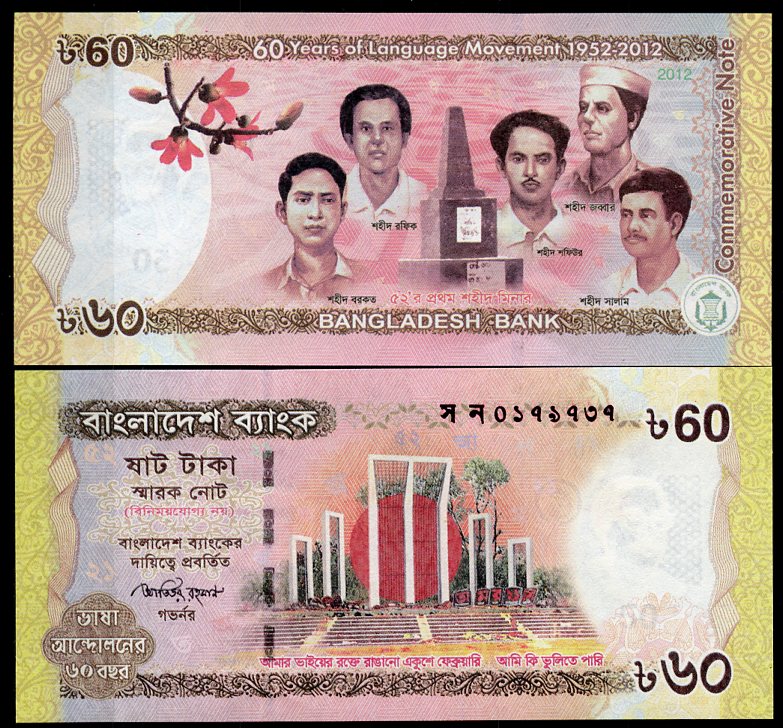 Бангладеш 60 така 2012 60 лет языкового движения 1952-2012 Pick 61 бумага UNC (пресс) 446-94-2