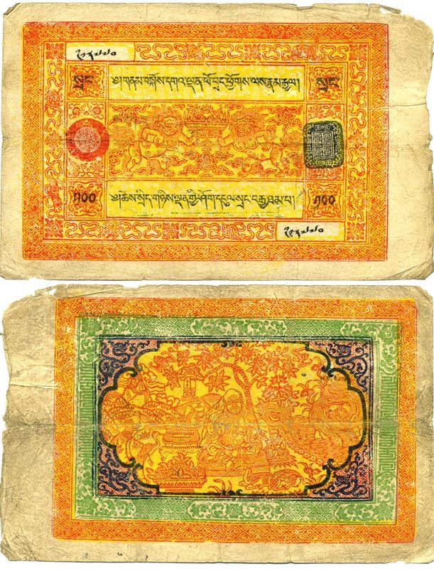 Тибет 100 срангов 1942-1959 Pick 11 бумага 000-00-00