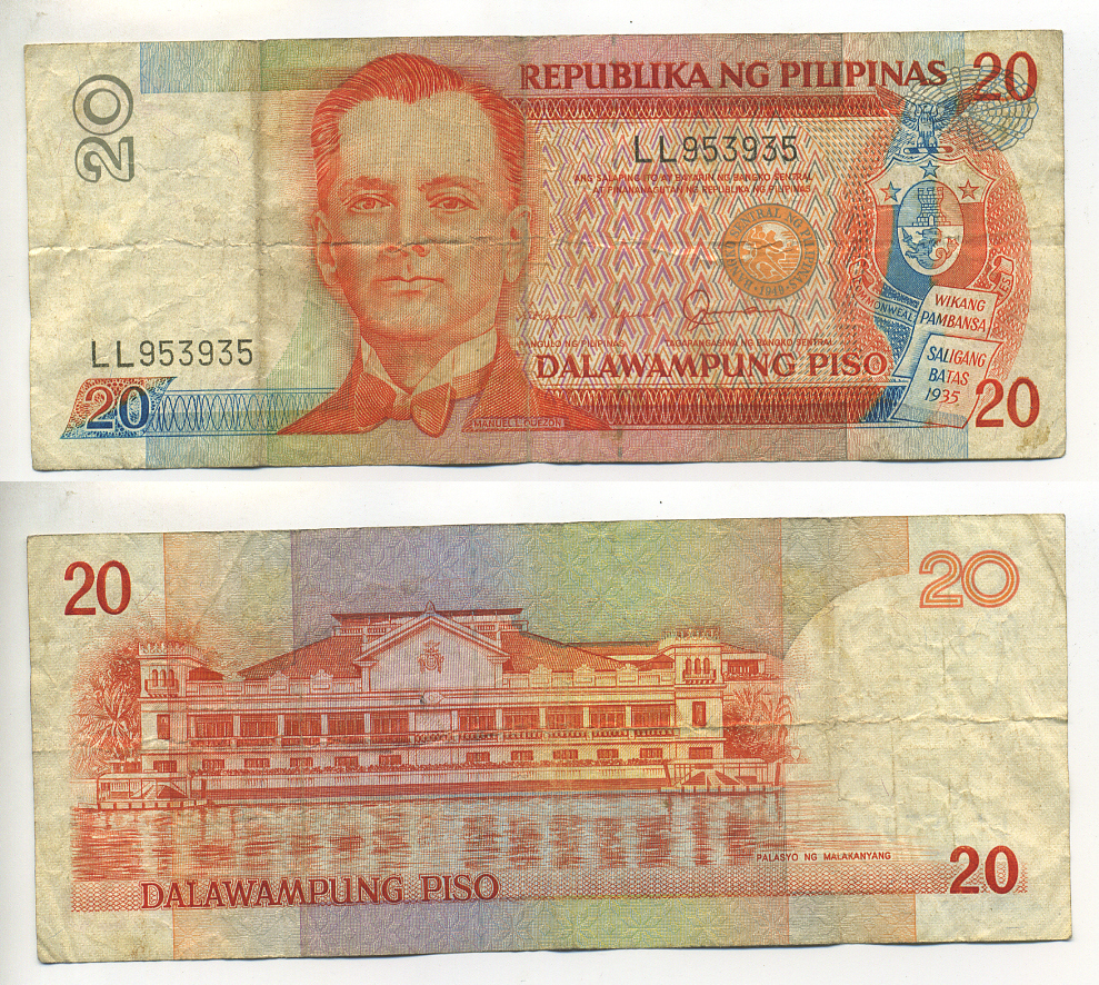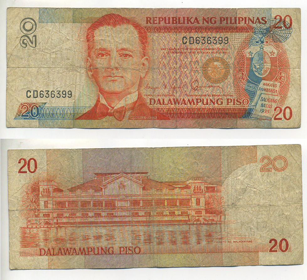 ФИЛИППИНЫ 20 ПЕСО 1986-1994 ПОДПИСЬ 11, МАНУЭЛЬ КЕСОН ВТОРОЙ ПРЕЗИДЕНТ ФИЛИППИН Pick 170b бумага 7222-77-2