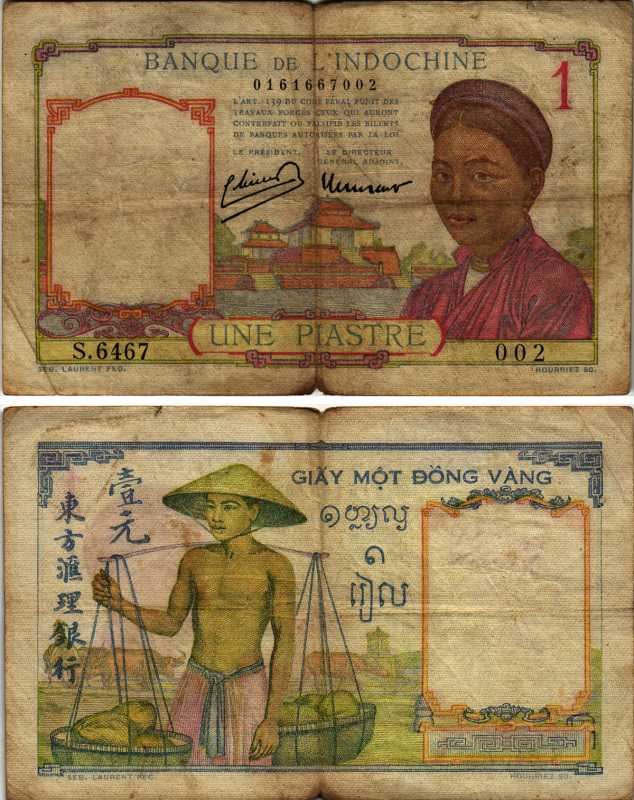 ФРАНЦУЗСКИЙ ИНДОКИТАЙ 1 ПИАСТР 1951 ПОДПИСЬ 11 Pick 54 бумага 8606-37-3