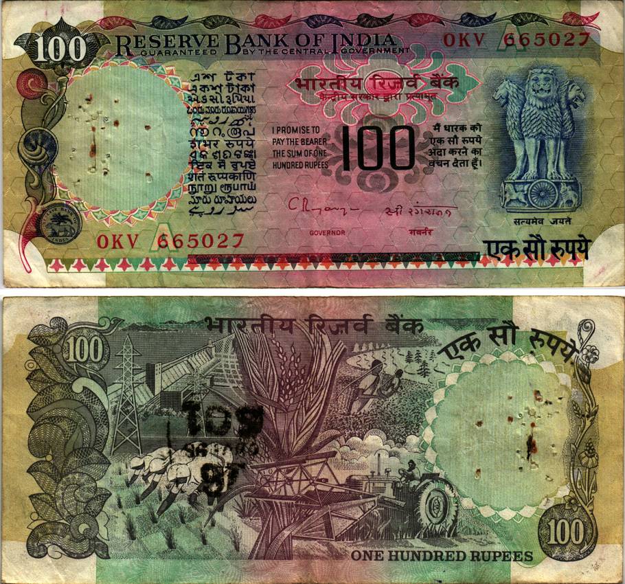 ИНДИЯ 100 РУПИЙ 1979 БУКВА А, ПОДПИСЬ 87 Pick 86g бумага 6280-22-2-1