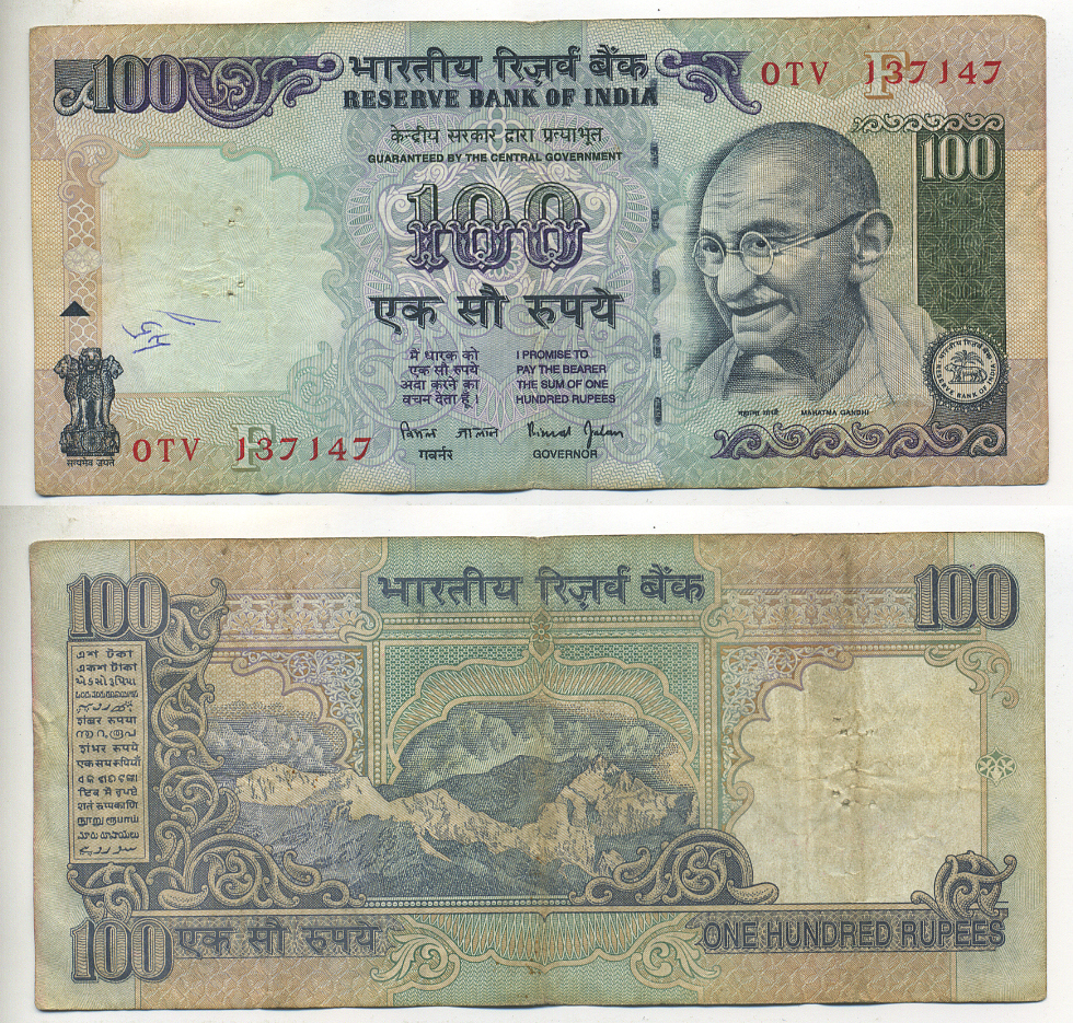 ИНДИЯ 100 РУПИЙ 1996 ГАНДИ, БУКВА F, ПОДПИСЬ 88 Pick 91i бумага 7222-25-3