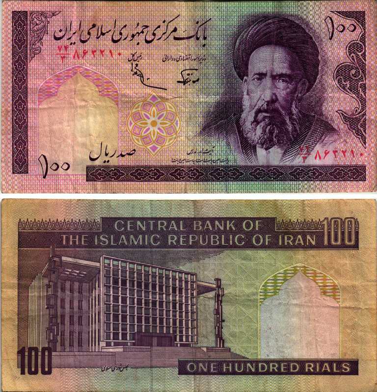 ИРАН 100 РИАЛОВ 1985- ПОДПИСЬ 25, АЯТОЛЛА МОДДАРЕС, ЗДАНИЕ ПАРЛАМЕНТА Pick 140d бумага 7484-62-1