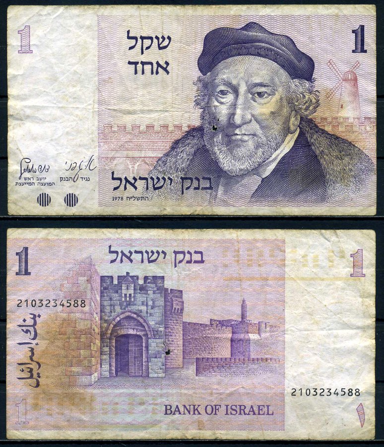 Израиль 1 шекель 1978 (80) Мозес Монтефиори Pick 43а бумага 6279-23-2-1