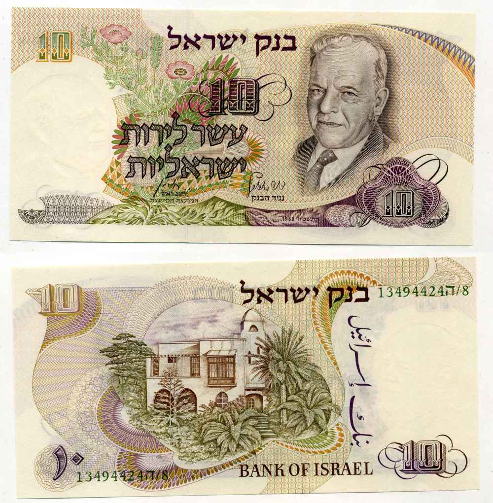 ИЗРАИЛЬ 10 ЛИР 1968 ЗЕЛЕНАЯ СЕРИЯ, ХАЙМ НАХМАН БЯЛИК Pick 35b бумага UNC (ПРЕСС) 8588-2-3-1