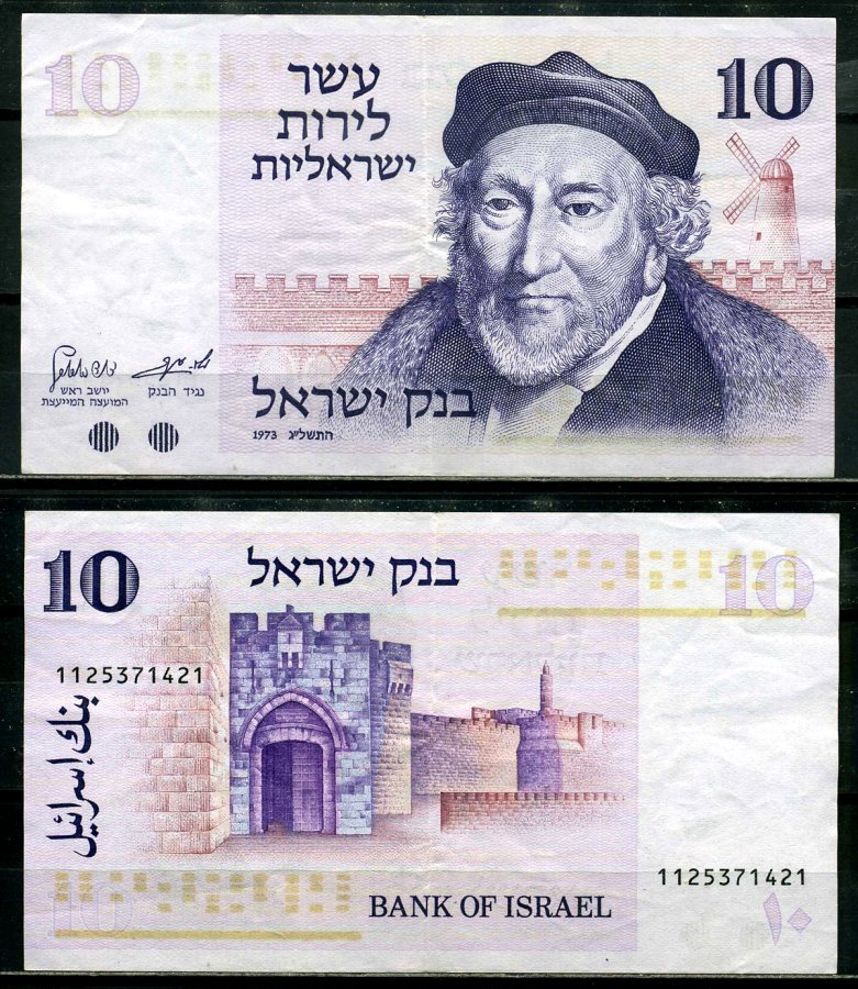 Израиль 10 лир 1973 сэр Моисей Монтефиори Pick 39а бумага 8602-3-3-2